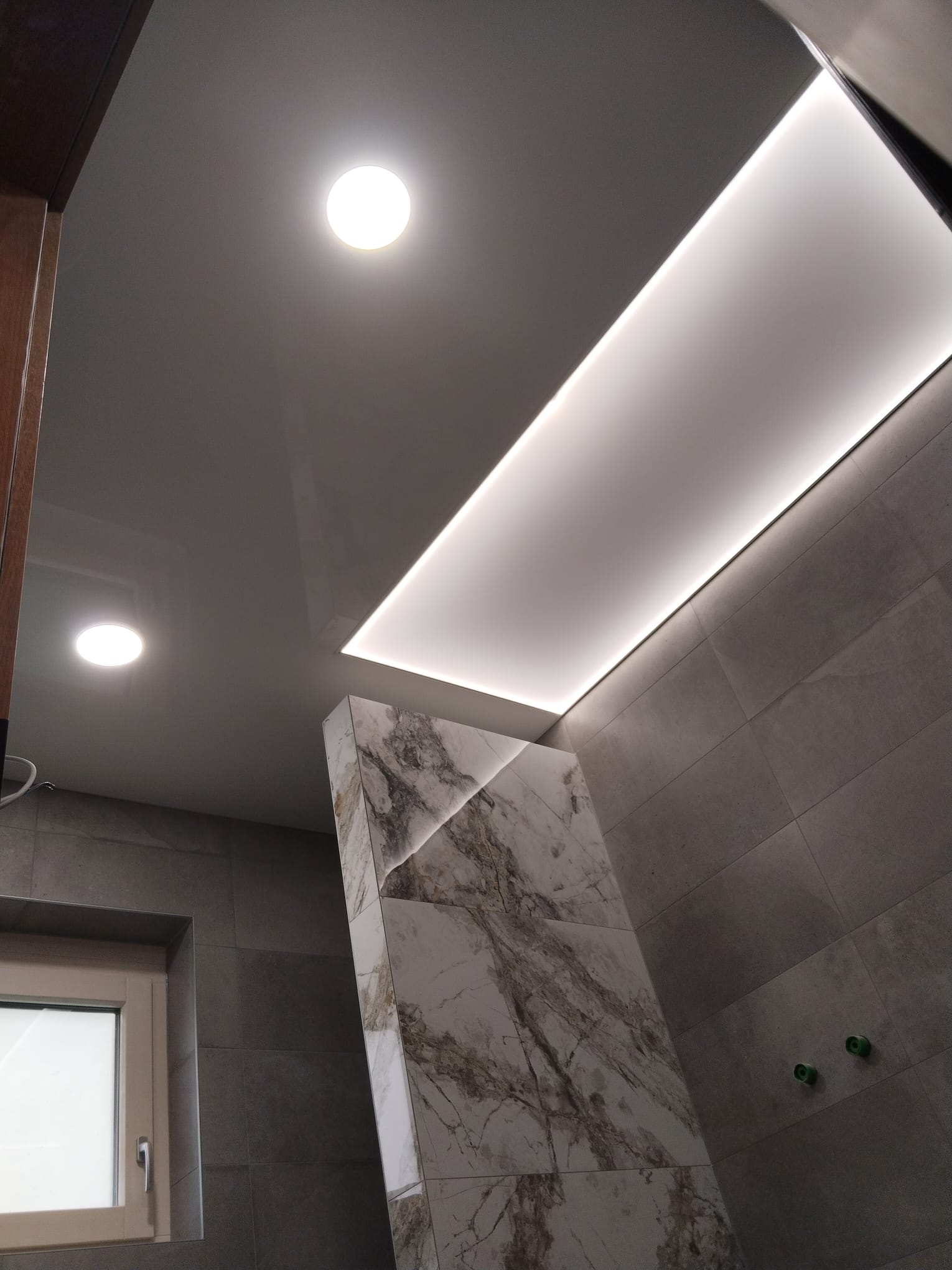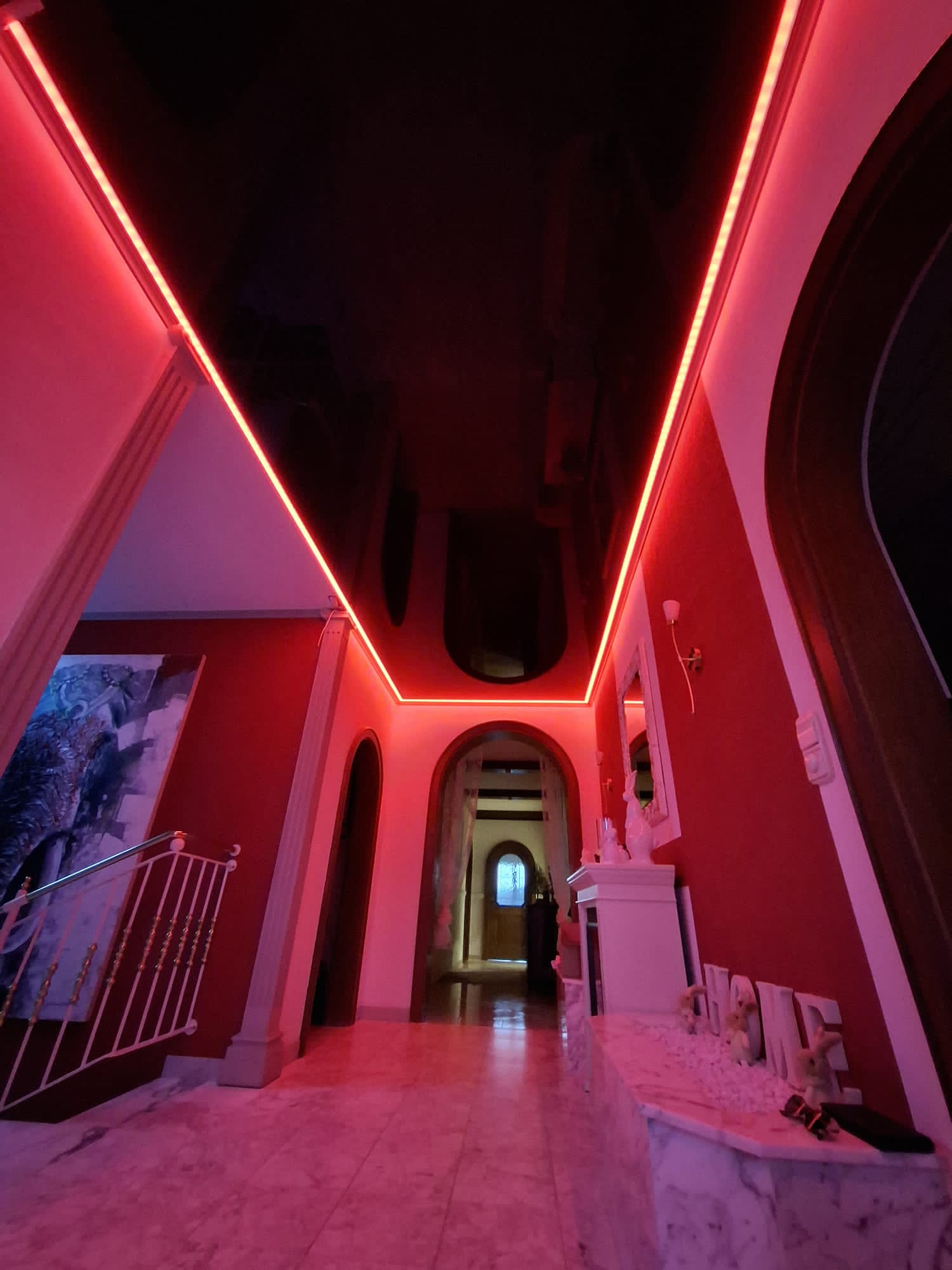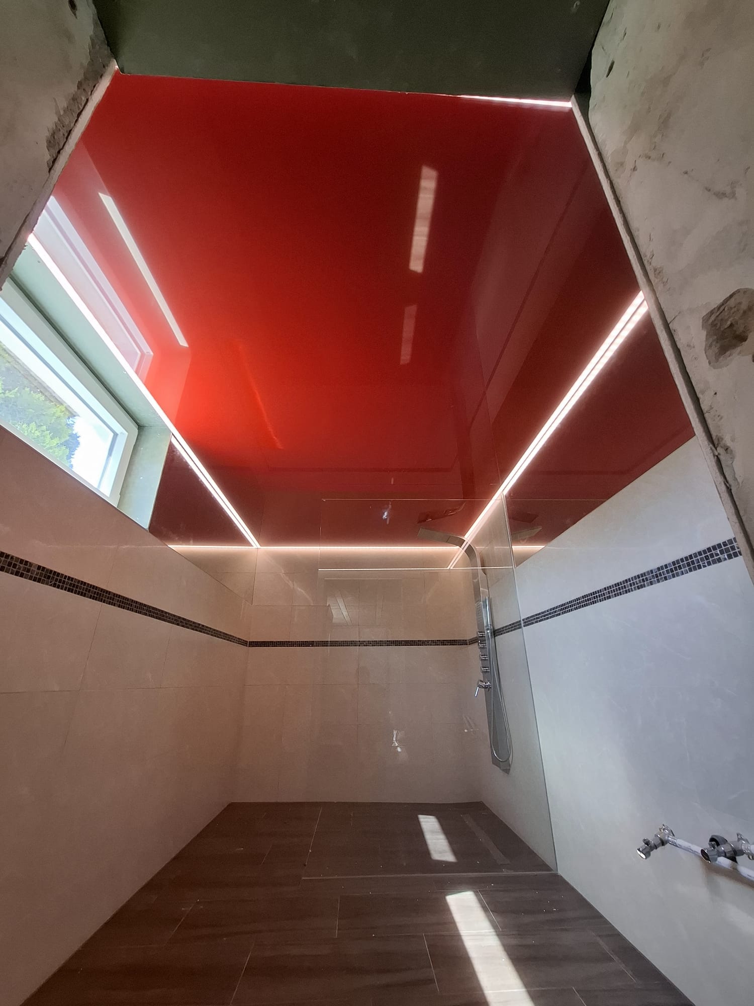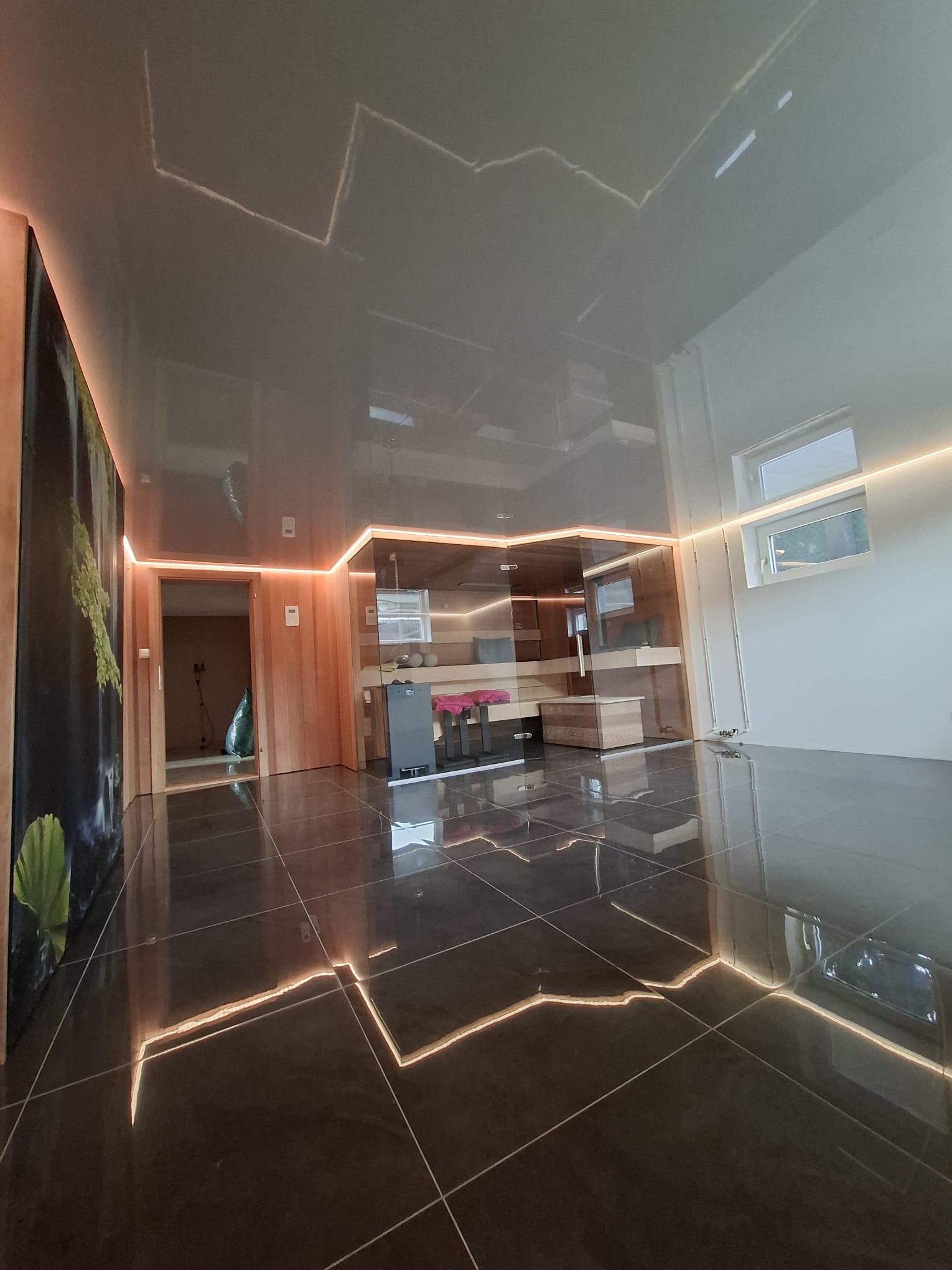 Die glänzenden Spanndecken setzen aufregende Akzente und verleihen niedrigen Räumen durch ihre Spiegelung ein Gefühl von Größe. Ideal für kleinere Räume oder Räumen mit einer niedrigen Decke.